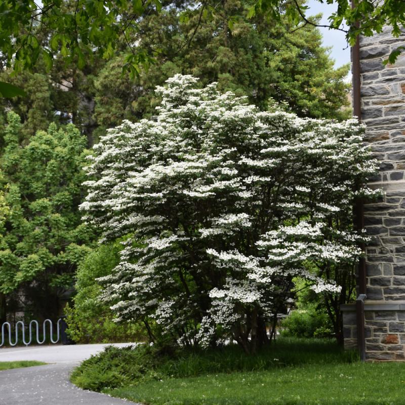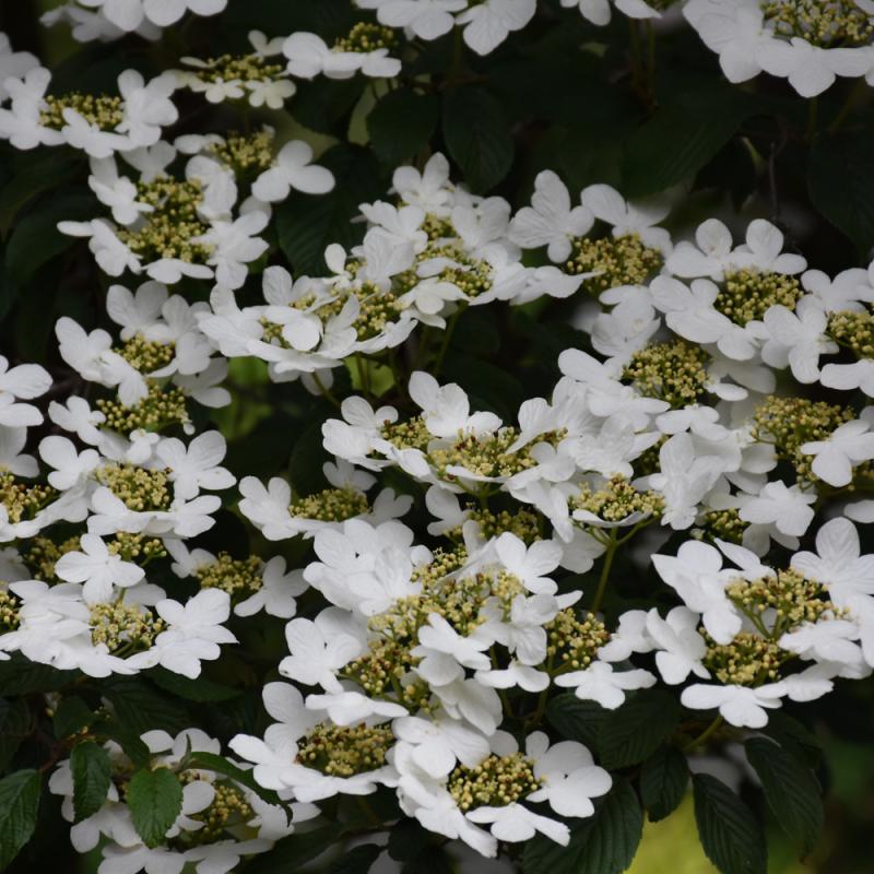 A truly beautiful shrub when in bloom, covered in clusters of snowy white flowers held atop the branches in spring; attractive horizontal branching on a compact upright plant, bright red berries and good fall color; a beautiful choice for the shrub garden