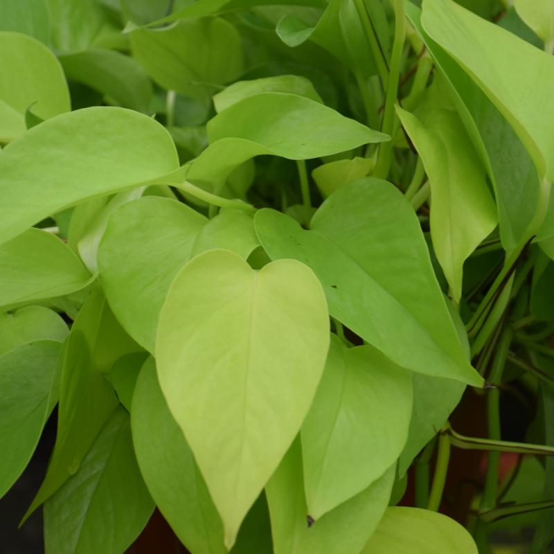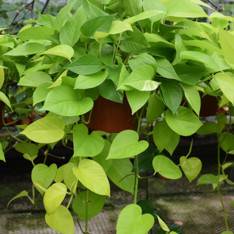 A climbing vine with luminous chartreuse-yellow heart shaped leaves; excellent for use in hanging pots, or cascading from windowsills