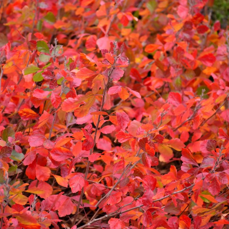 A low growing and compact shrub with interesting foliage turning brilliant colors in fall and bright yellow flowers in spring; makes an excellent groundcover as it tends to sucker, filling in areas quickly, does well in shade