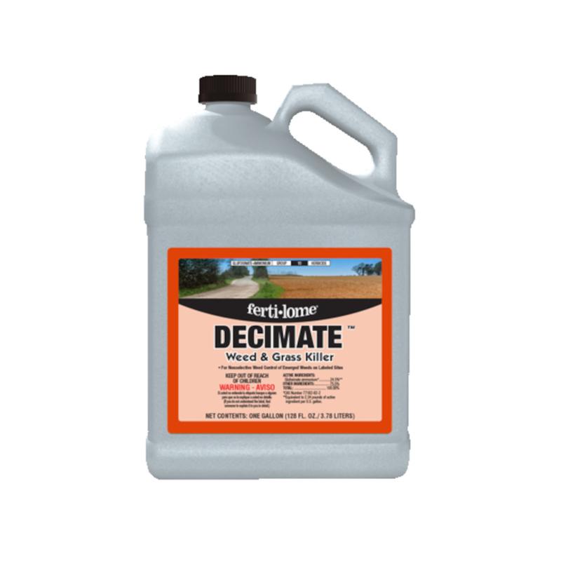 DECIMATETM Weed & Grass Killer is a non-selective herbicide that kills weeds grass plus some woody plants.