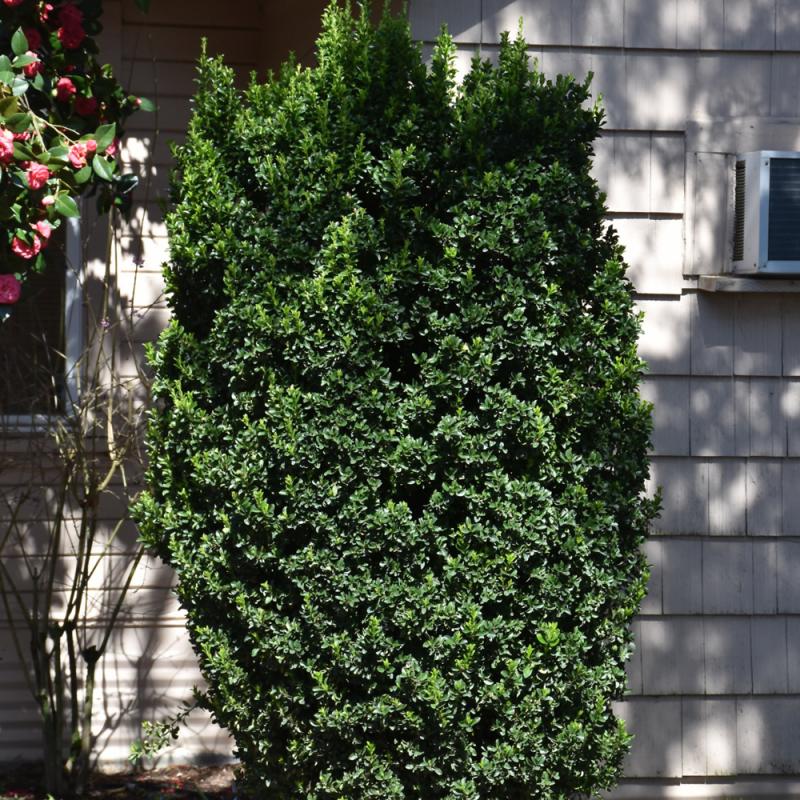 This is a stunning evergreen shrub with deep green glossy foliage that is dense and fast growing, has a columnar growth habit that makes it excellent for hedging and border applications; tolerant of salt spray