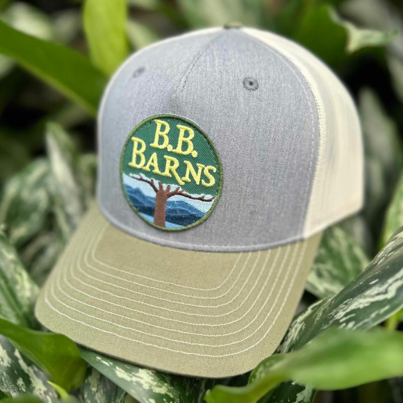 Our Grey Army Hat features a trucker style mesh sides and rear to keep your head cool while you’re working in the yard or garden, and a cotton-polyester front featuring a premium embroidered patch of your favorite garden center’s logo. Look good while reminding everyone that you get the best quality plants at B.B. Barns!