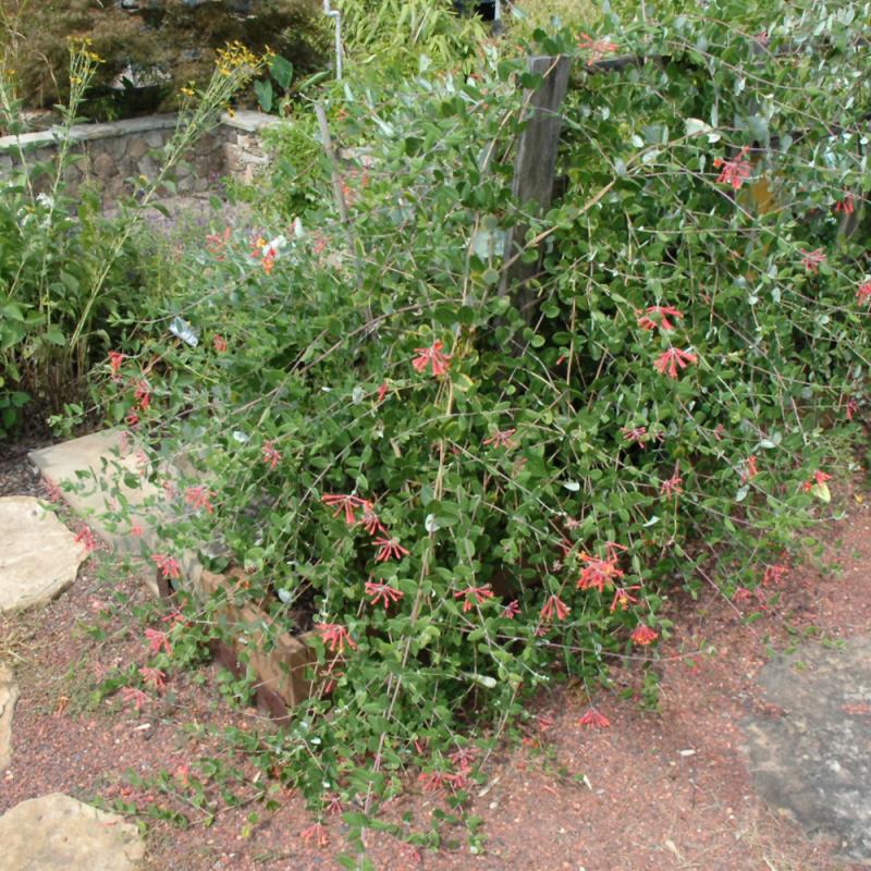 An old reliable vine favored for its showy reddish-orange tubular flowers with bright yellow throats in spring and repeating in summer; easy to grow, flowers best in full sun; ideal for covering an arbor, fence or trellis