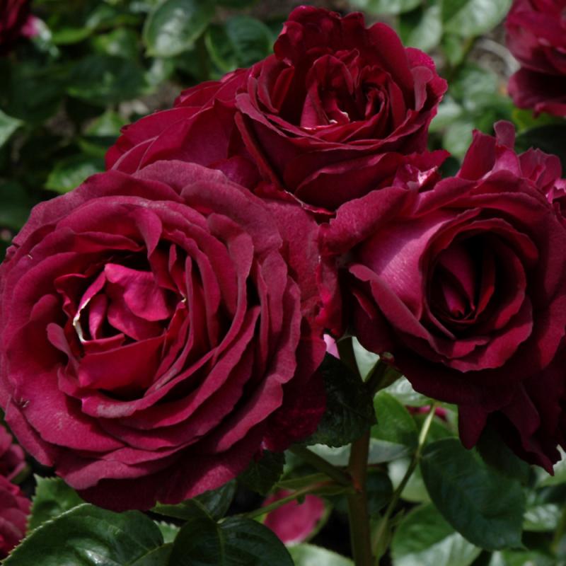 Clusters of velvety deep purple, large ruffled blooms against the shiny, deep green foliage for a visually stunning display; intoxicating spicy clove and lemon citrus fragrance; this vigorous, bushy plant has very good disease resistance