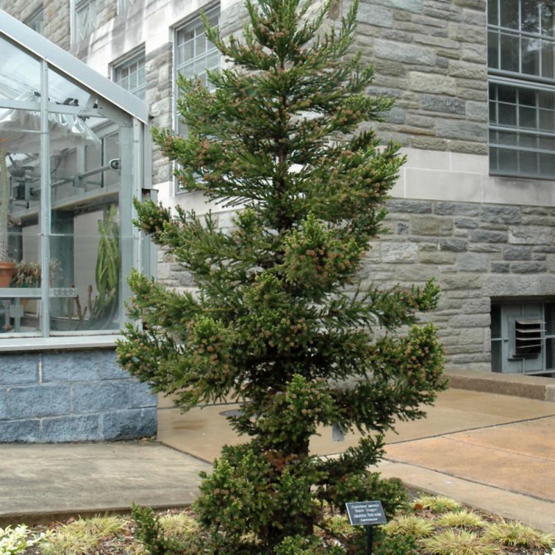 A popular loosely pyramid-shaped evergreen with very deep green foliage, slow-growing and graceful; an excellent choice for an accent with a distinctively Asian feel in the home landscape
