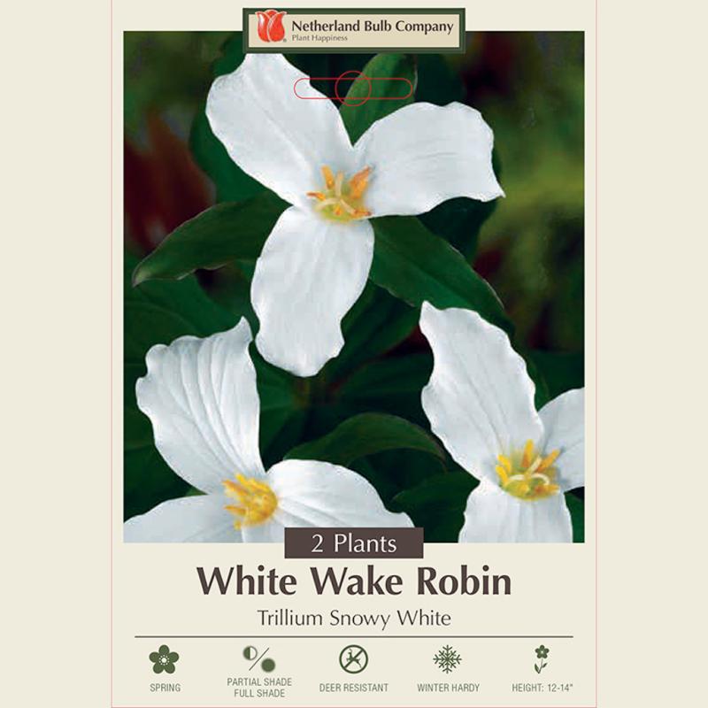 Trillium ‘Snowy White’ brings a refined woodland elegance with crisp white, three-petaled flowers rising above rich green foliage. Blooming in early spring, it is ideal for shaded gardens and naturalized woodland settings.