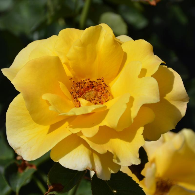An exceptional hybrid tea rose that holds its brilliant color proudly even in hot weather and releases a pleasant fruity fragrance into the summer air; very weather and disease resistant; the blooms are long lived as cut flowers as well