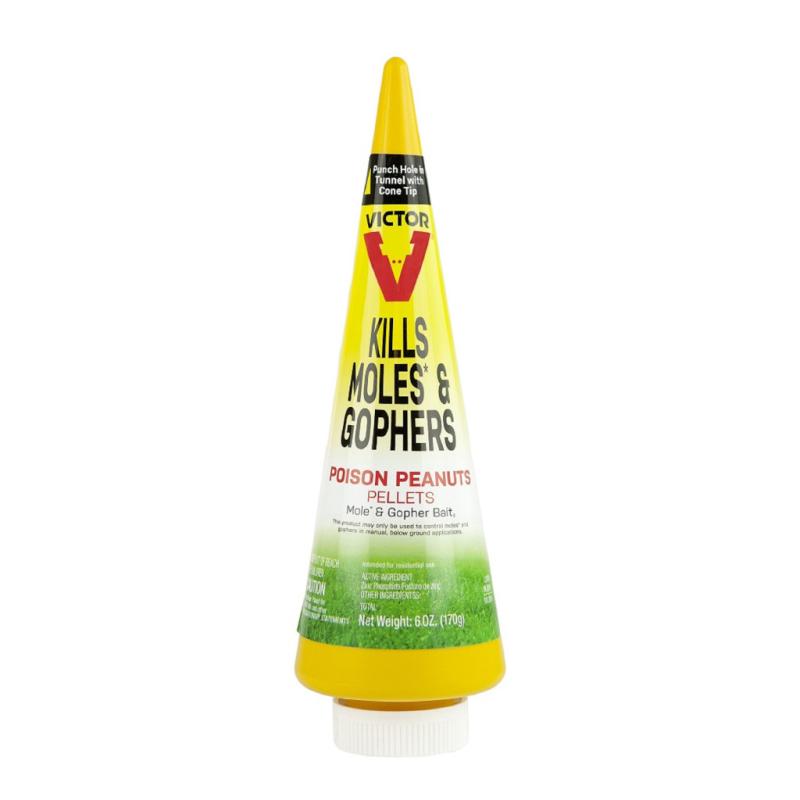 Quickly kill moles and gophers. The cleverly designed canister features a cone tip that allows users to punch holes in active tunnel surfaces for easy application of the pellets. Uniquely formulated to be palatable to moles and gophers. Do not place in areas accessible to children and pets.