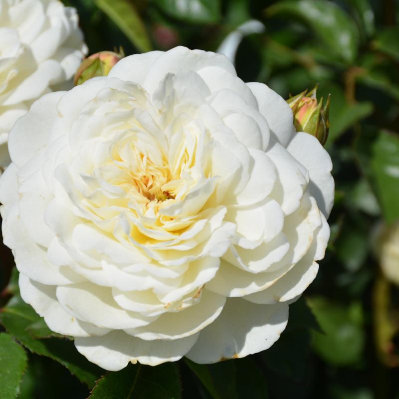 A vigorous, upright bushy variety presenting large, full white blooms over light green, glossy foliage; light fruity fragrance; excellent choice for garden beds, borders, containers and fresh cut flower displays; repeat bloomer throughout the season