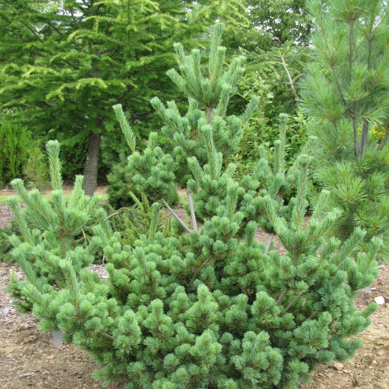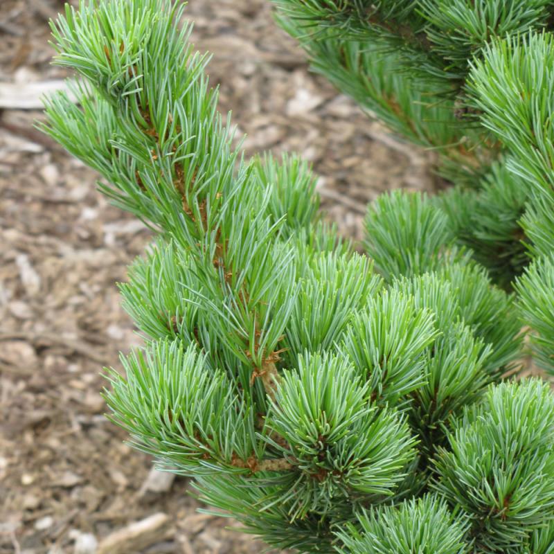 A slower growing selection that will maintain a uniform and densely branched upright form; silvery blue-green needles appear bright making this an impressive selection as an accent tree; often trained into bonsai forms