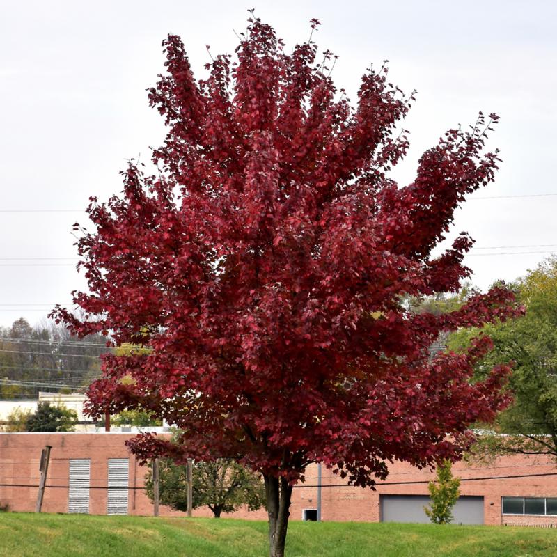 A stunning seedless male tree with an oval habit, upright form makes it ideal for smaller home landscapes; subtle red flowers cover the bare branches in spring, spectacular long lasting purplish-red fall color