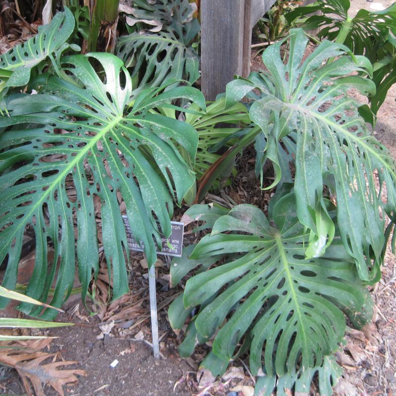 This variety presents large, glossy green leaves with deep splits and holes; can be allowed to climb trellises or other structures; flowering or fruit production is highly unlikely indoors; a stunning container plant for indoor spaces