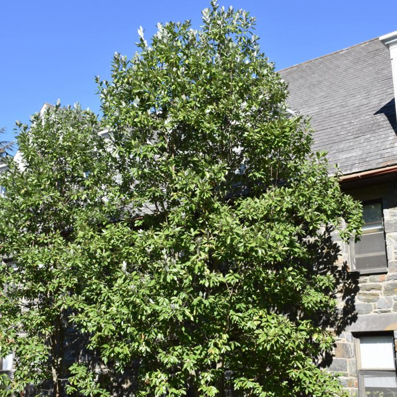 A medium sized tree with fragrant cup-shaped flowers in late spring, and then sporadically throughout summer; withstands lower winter temperatures, semi-evergreen; narrow habit makes it a wonderful accent in smaller home landscapes
