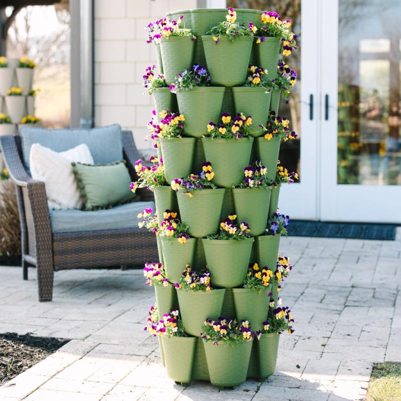 Turn your backyard into a gardening oasis with our patented seven-tier vertical planter proudly made in East Tennessee. Debuting in 2020, this free-standing vertical planter is perfect for growing smaller plants and root vegetables. With more planting pockets than any other vertical planter we offer, you’ll love the variety of leafy greens, root vegetables, and herbs that can be grown in the same footprint as the Original. See how it works and experience the joy of containerized gardening for yourself!