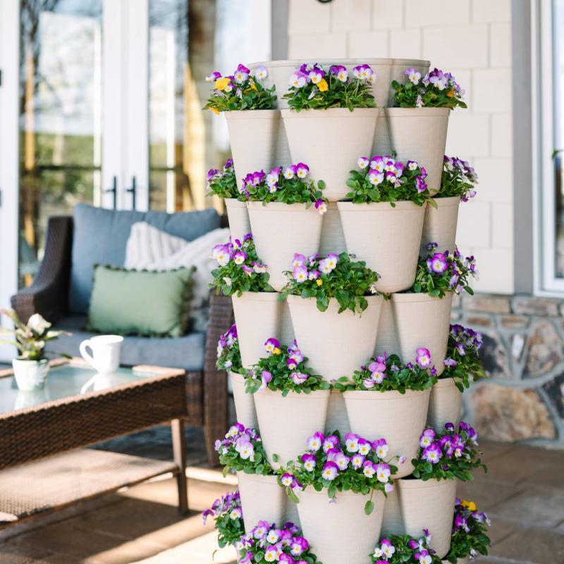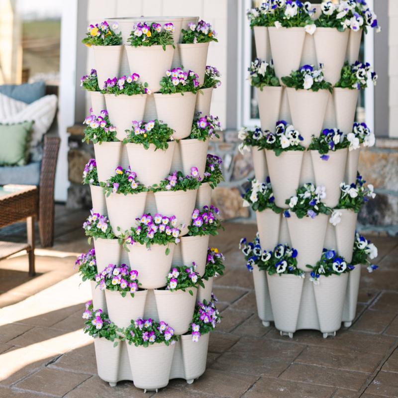Turn your backyard into a gardening oasis with our patented seven-tier vertical planter proudly made in East Tennessee. Debuting in 2020, this free-standing vertical planter is perfect for growing smaller plants and root vegetables. With more planting pockets than any other vertical planter we offer, you’ll love the variety of leafy greens, root vegetables, and herbs that can be grown in the same footprint as the Original. See how it works and experience the joy of containerized gardening for yourself!