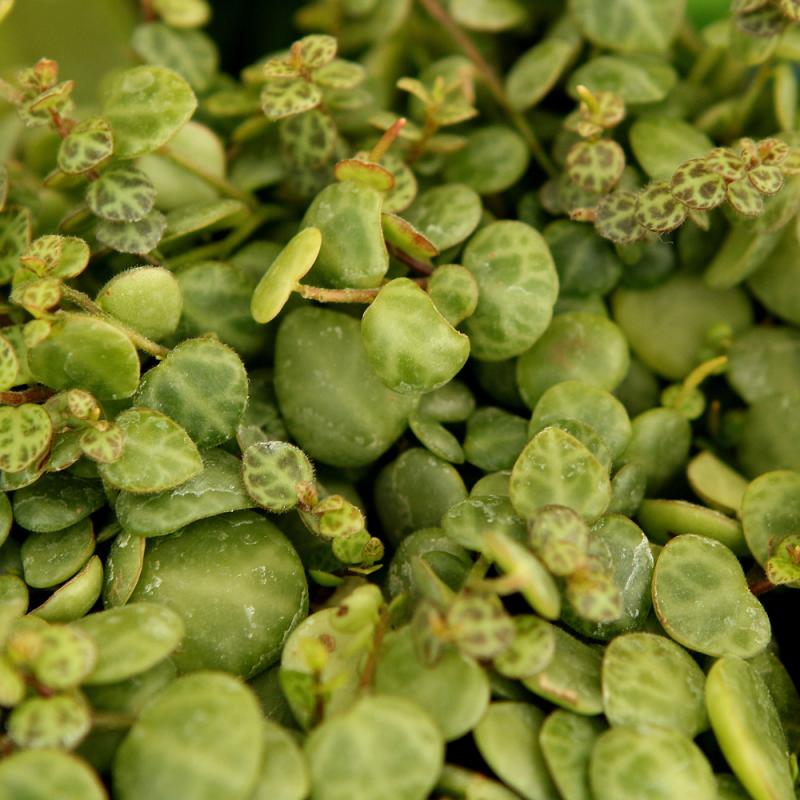 This stunning selection produces tiny, rounded, blue-green leaves with intricate silver veining that form along the trailing stems; grown primarily for foliage, flower spikes are not significant; low to bright light, no direct sun