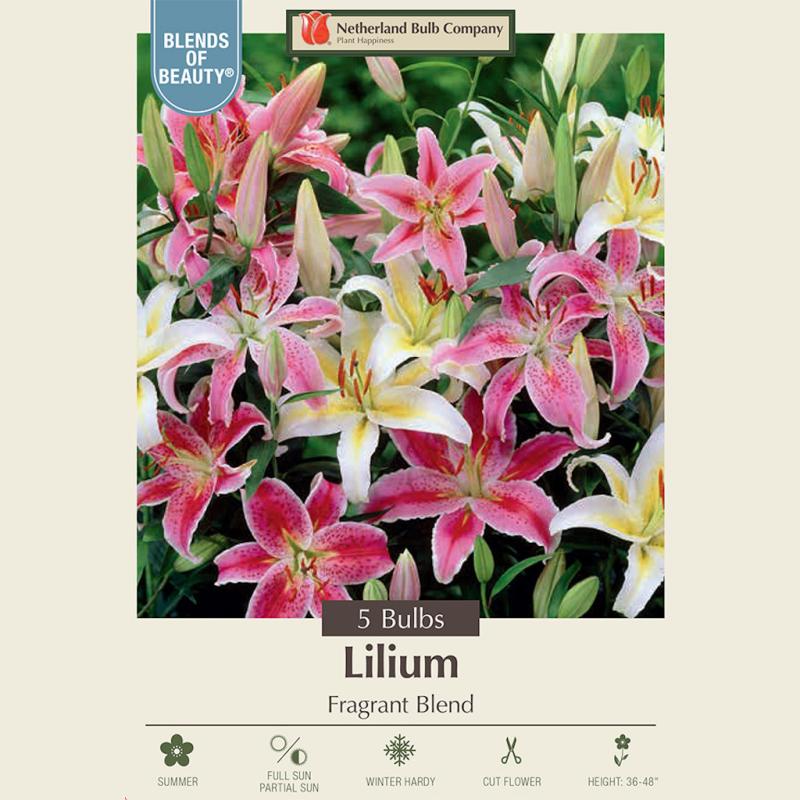 This fragrant lily blend combines a variety of richly scented lilies in soft pastels and bold jewel tones, filling the summer garden with color and perfume while producing excellent cut flowers.