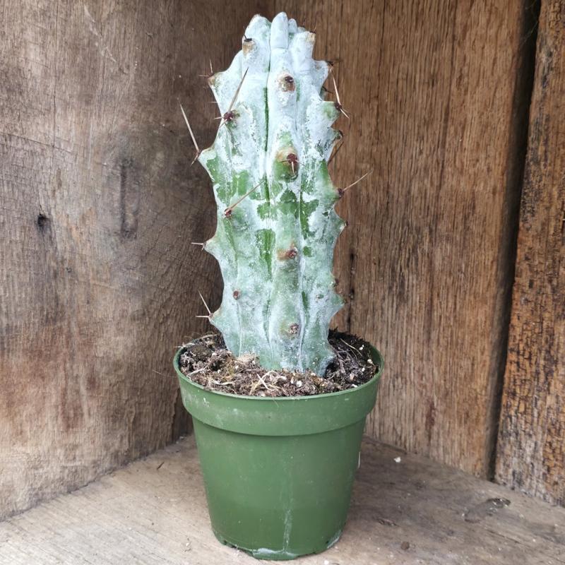 A striking and rare succulent with ghostly white, ridged stems and contorted, ribbed shapes resembling abstract sculpture. Sometimes called "Boobie Cactus" for its curvy form, this Euphorbia is perfect for collectors and modern indoor displays. Requires warm temps, well-draining soil, and minimal water.