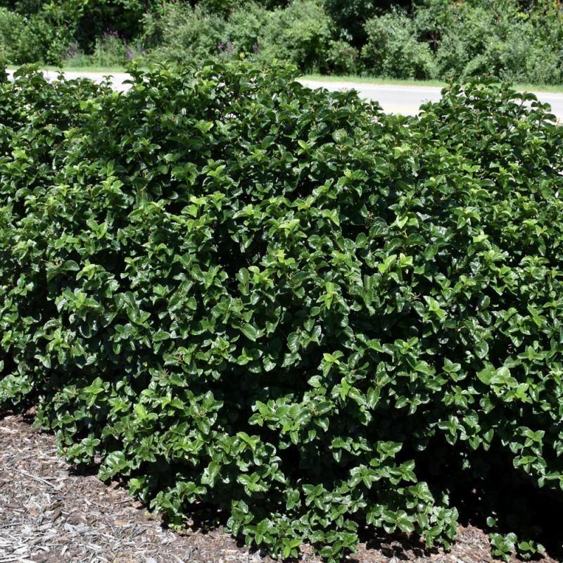 All That Glitters and All That Glows in one container; self pollinating; clusters of creamy white flowers in spring followed by masses of blue berries; highly lustrous leaves turn burgundy-red in fall; ideal for the garden or as a natural hedge
