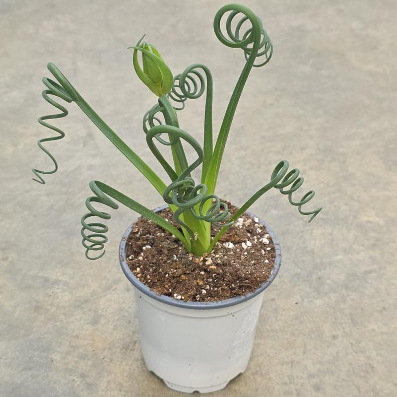 Albuca spiralis 'Corkscrew', also known as Frizzle Sizzle, is a fascinating and whimsical bulbous plant known for its tightly curled, spiraling green leaves that resemble little corkscrews. Native to South Africa, this succulent curiosity thrives in bright light and well-draining soil. In late winter to spring, it may surprise you with yellow, vanilla-scented flowers that rise above the foliage. Ideal for windowsills or collectors of unusual plants, ‘Corkscrew’ brings charm and character to any indoor garden.