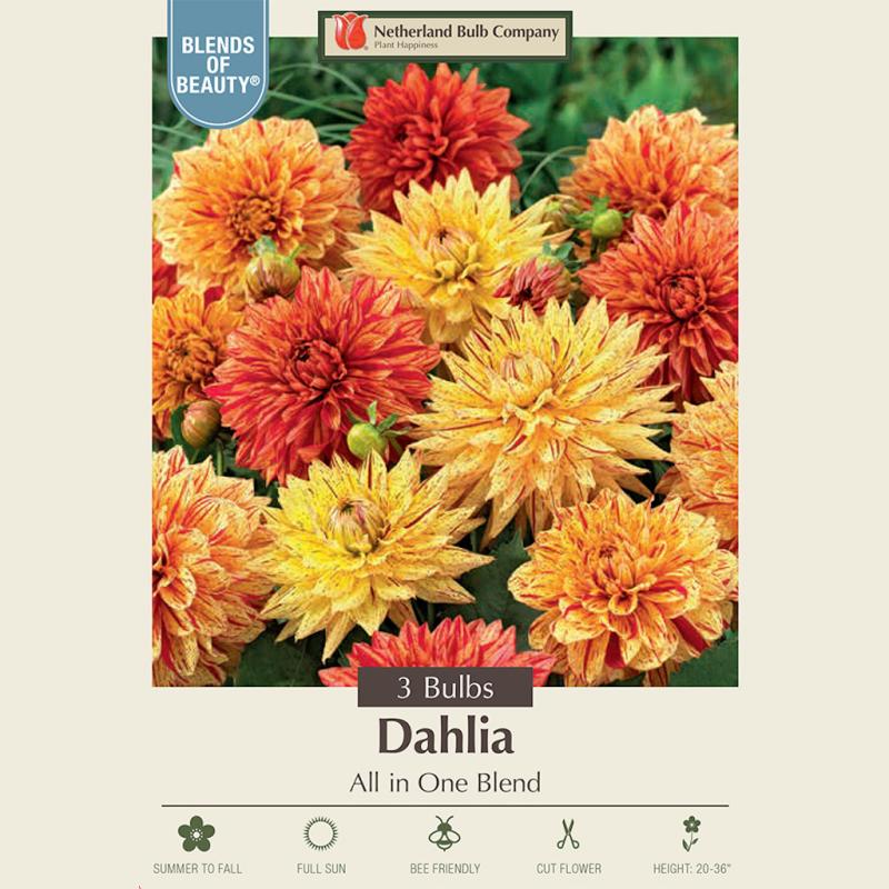 This all-in-one dahlia blend offers a wide mix of forms and colors, delivering continuous, eye-catching blooms from midsummer until frost in garden beds and cutting gardens.