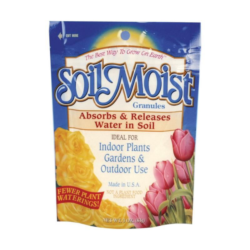 Soil Moist 3 oz. Water Management Granules are designed to reduce plant watering by absorbing 200 times their weight in water and releasing a steady supply of water to the plant as needed. They are excellent for annuals and new transplants. These granules are effective in the soil for 3 to 5 years and are ideal for interior and exterior plantings such as trees, shrubs, containers, baskets, flower beds, vegetables, and turf. Soil Moist acts as a form of insurance for the plant and is environmentally friendly.